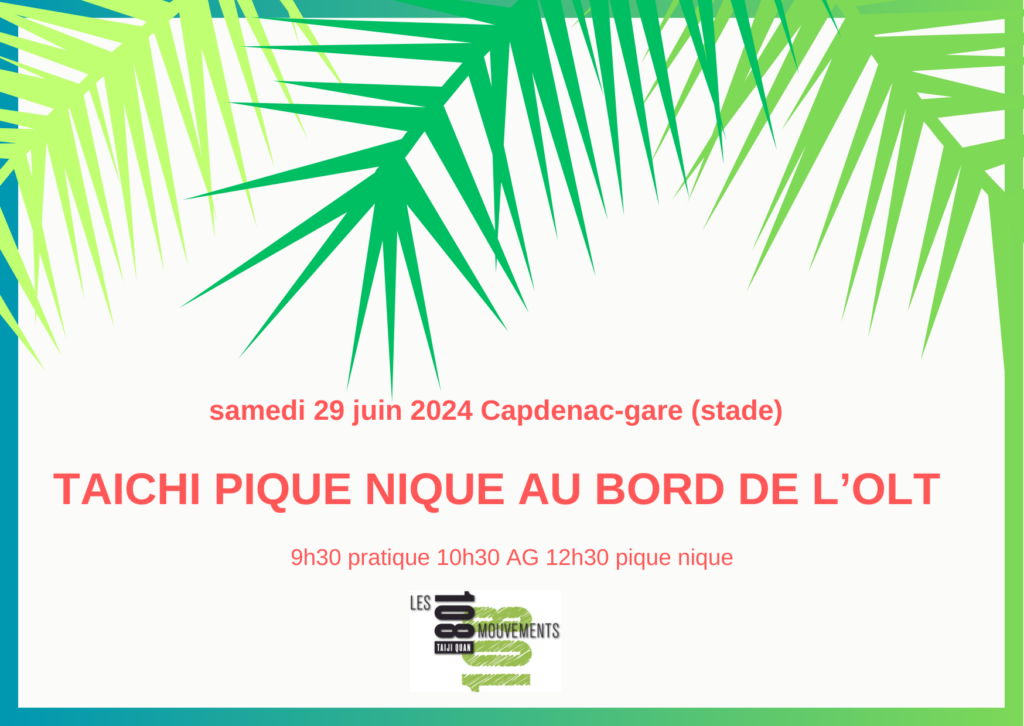 29 juin 2024 – Assemblée Générale de l’Association Les 108 Mouvements – Pratique du Taichi – Pique Nique partagé