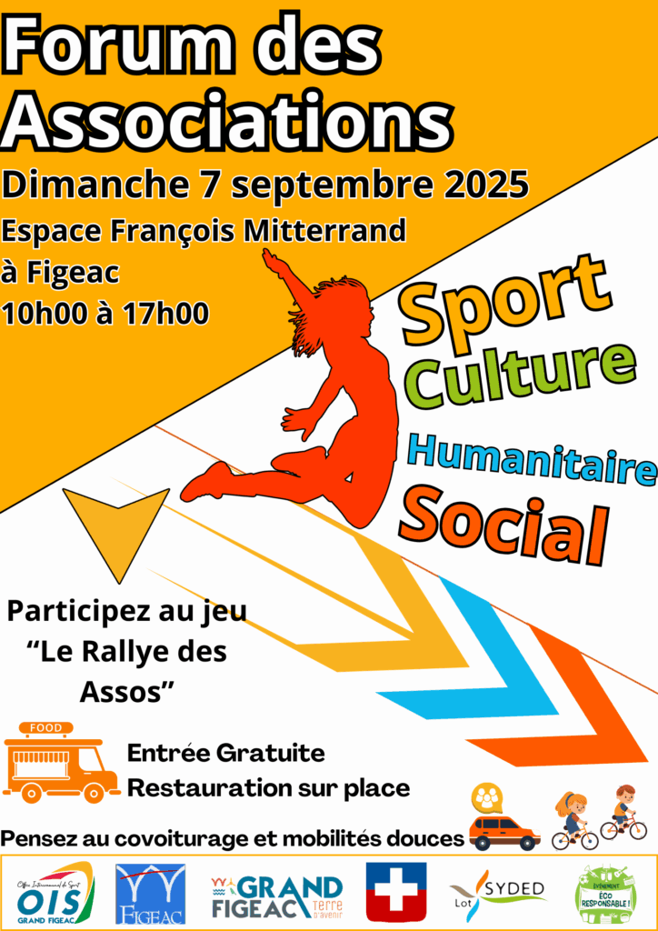 7 septembre 2025 de 10H à 17H: Forum des Associations du GRAND FIGEAC à l’espace F. Mitterrand de FIGEAC
