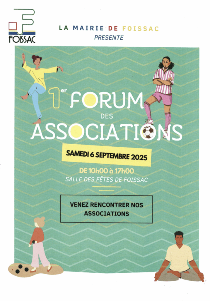 6 septembre 2025 de 10H à 17H : 1er Forum des Associations à la salle des Fêtes de FOISSAC – 12260