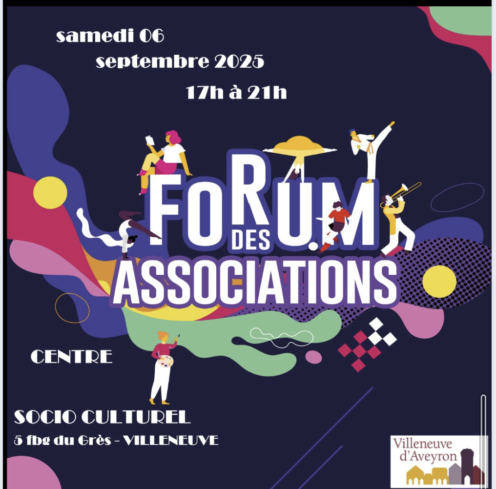 6 septembre 2025 de 17H à 21H: Forum des associations à l’espace Socio-Culturel de VILLENEUVE D’AVEYRON 12260