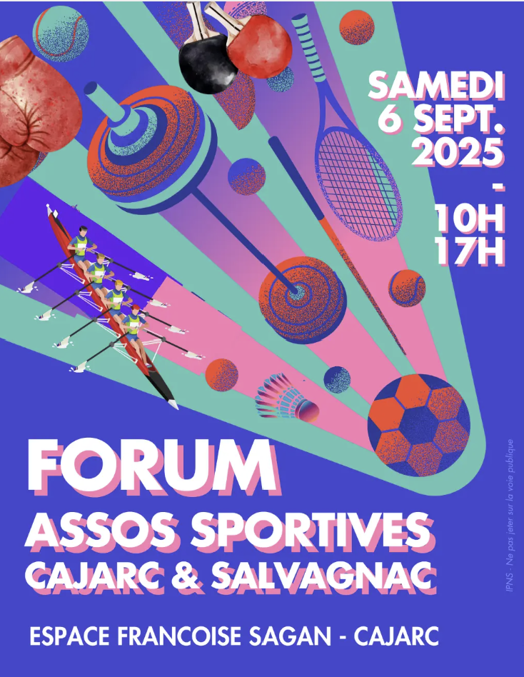 6 septembre 2025 de 10H à 17H: Forum des associations sportives de CAJARC & SALVAGNAC devant l’Espace Françoise Sagan – CAJARC